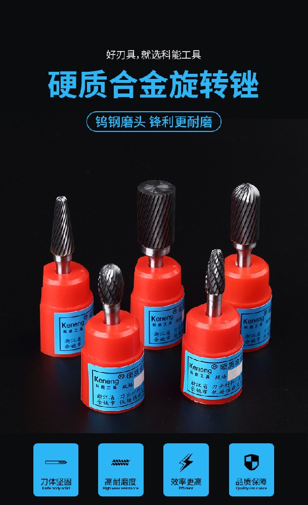 耐用度比高速鋼刀具提高十倍,比小砂輪提高200倍以上。硬質(zhì)合金旋轉(zhuǎn)銼刀使用方便簡(jiǎn)單,安全可靠。